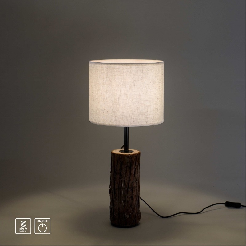 Den rustika bordslampan från BARKA-serien ger inte bara ljus utan är också ett dekorativt blickfång när den är avstängd. Den beigefärgade lampskärmen passar bra in i många inredningsstilar. Lampans bas är försedd med en naturlig träbark. Lampan levereras utan glödlampa och kan monteras med en E27 glödlampa på högst 40 watt. Du är alltså mycket flexibel när det gäller ljusstyrka och val av ljusfärg. Du kan bekvämt tända och släcka din bordslampa med hjälp av en strömbrytare. Placera din dekorativa blickfångare i ett av dina vardagsrum.