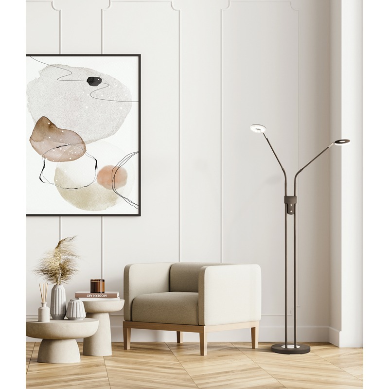 Letar du efter en mysig rumsbelysning för läshörnan och som ett alternativ till den ljusa taklampan? Börja sedan leta efter den perfekta platsen för denna dekorativa golvlampa. Vid första anblicken är det en enkel armatur, men vid andra anblicken döljer