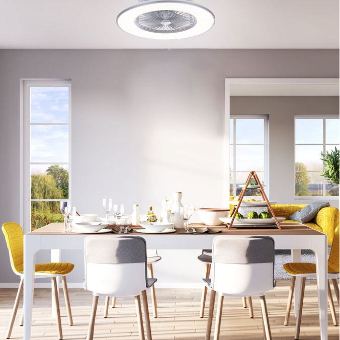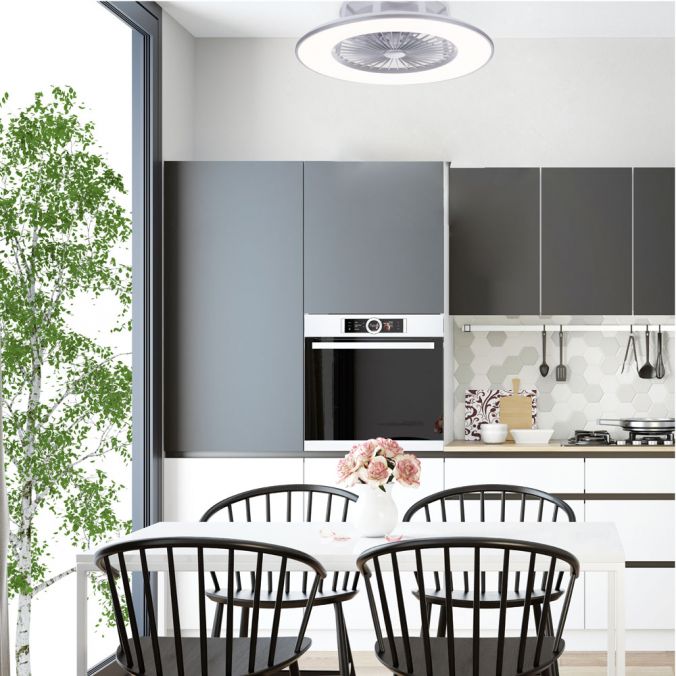 Ljus och vind: Med vår LED-taklampa SMARTI får du ljus och fläkt i ett. Taklampan är idealisk när du behöver ett svalkande huvud. Med den medföljande fjärrkontrollen kan du välja mellan tre hastighetsnivåer för fläkten och enkelt bestämma hur sval du vill ha det, till exempel en varm sommardag. Med hjälp av den infraröda fjärrkontrollen kan du välja mellan ljusfärgerna varmvitt och kallvitt och fritt välja ljusintensitet. Justera som du vill hur ljust och hur svalt du vill ha det i ditt vardagsrum, kök eller sovrum. Tack vare den integrerade timern kan du också ställa in hur länge takfläkten ska vara i drift.