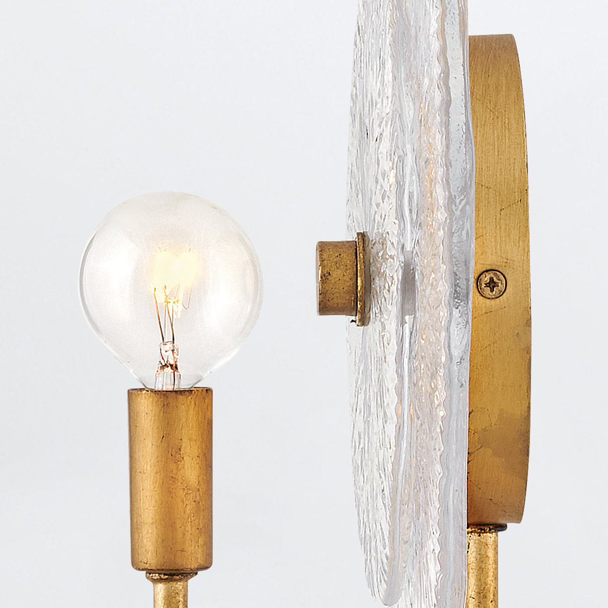 Rene strålar ljus genom flera lager av vackra, pressade glasskivor. Renes signaturdetaljer framhäver en sliten mässingsfinish, vilket framkallar glamourinfluenser.